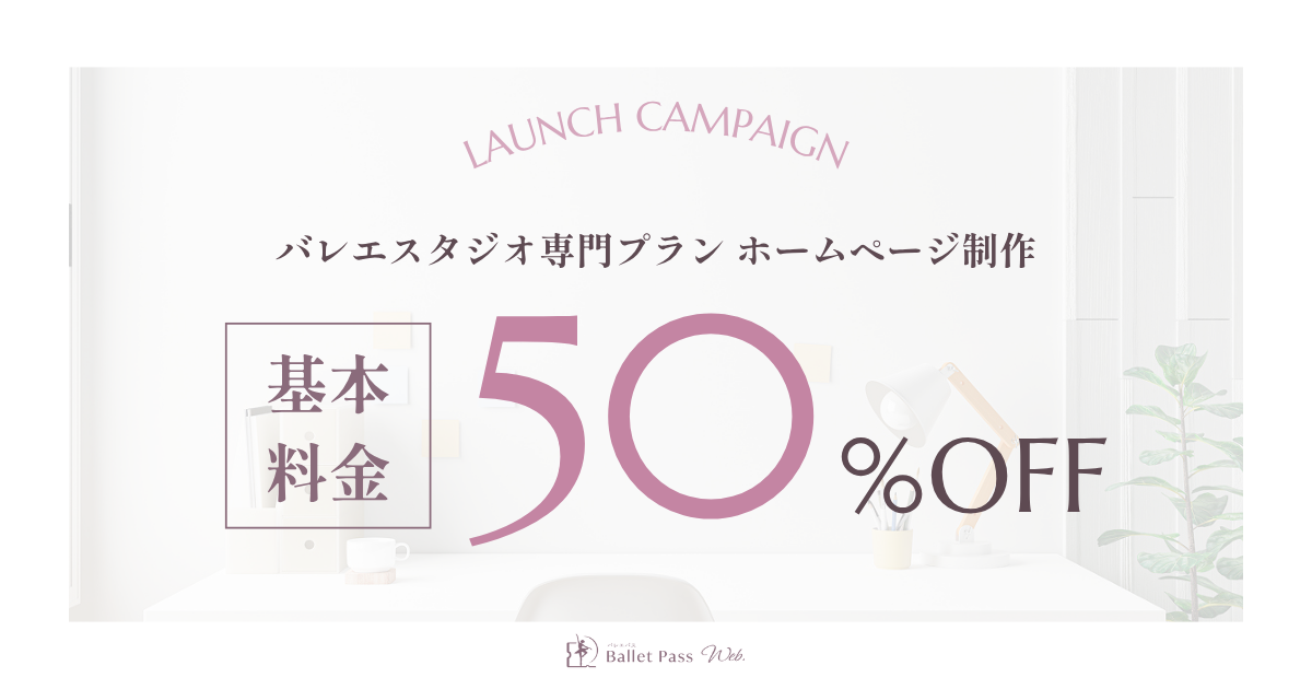Ballet Pass Webの「バレエスタジオ専門ホームページ制作プラン」が期間限定で 基本料金50%OFF に。