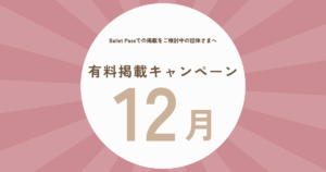 バレエパスでは、冬の舞台や来春の公演に向けて準備を進めるイベント主催者様を応援するため、12月限定の特別なキャンペーンを実施いたします。