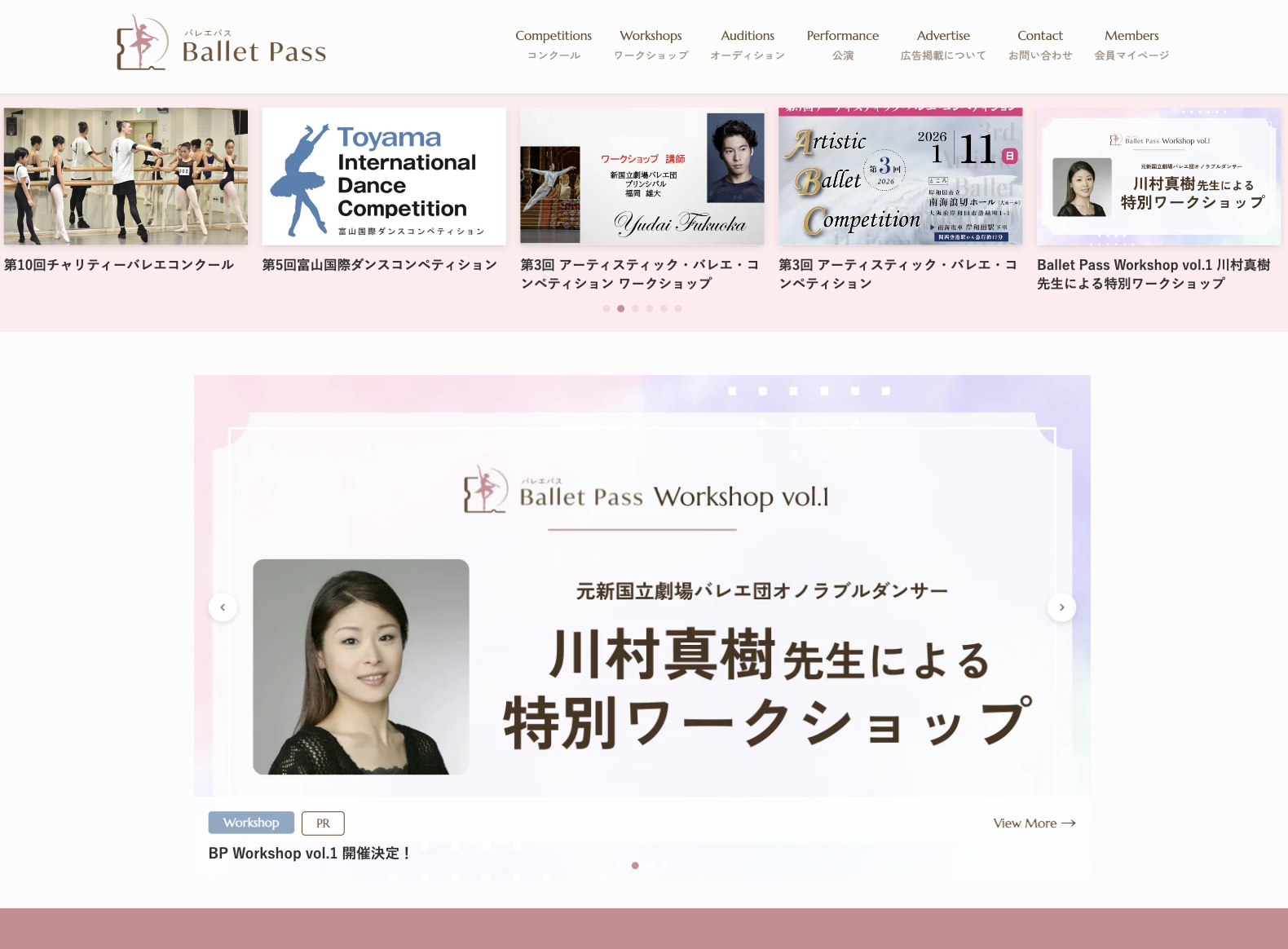 Ballet Pass 公式サイト サイトを見る プラン:Other タイプ:Original メモ:情報メディア「Ballet Pass」公式サイトを自社で企画・構築。 コンクール・ワークショップ・スタジオ情報を全国規模で発信する総合バレエプラットフォームです。 WordPressをベースに、ACFとカスタム投稿タイプを組み合わせて多層的な情報を管理。 検索性・UI設計にもこだわり、カテゴリ別・月別・地域別での絞り込みが可能な設計としました。 また、投稿の自動更新やSNS連携など、運営効率を高める仕組みも実装しています。 Back