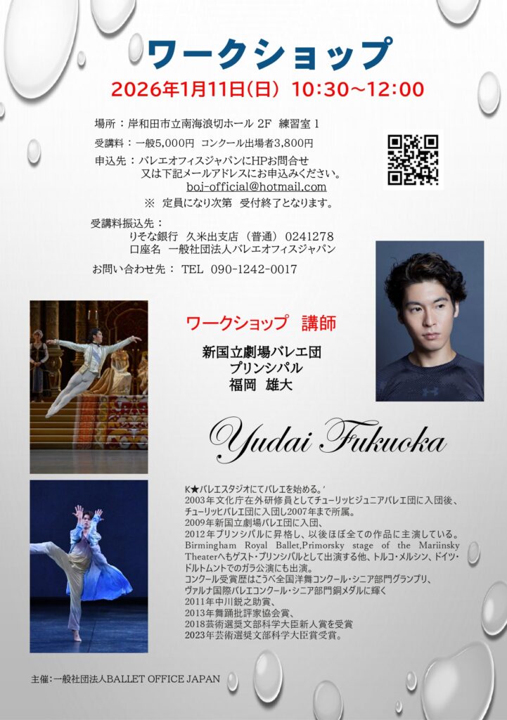 • 備考:定員になり次第締切 / 申込先 : バレエオフィスジャパンにHPお問合せ 又は下記メールアドレスにお申込みください。 boj-official@hotmail.com